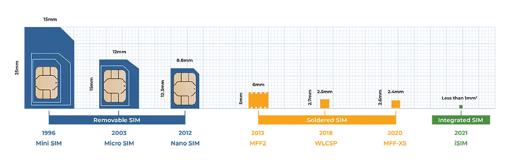 iSIM (Integrated SIM) | Less than 1sq mm |