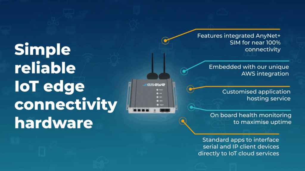 The Hera 604 enables you to future-proof your IoT project. Encased in rugged aluminium the Eseye Hera 604 router is tough and durable and the direct mounting ensures easy and secure installation.