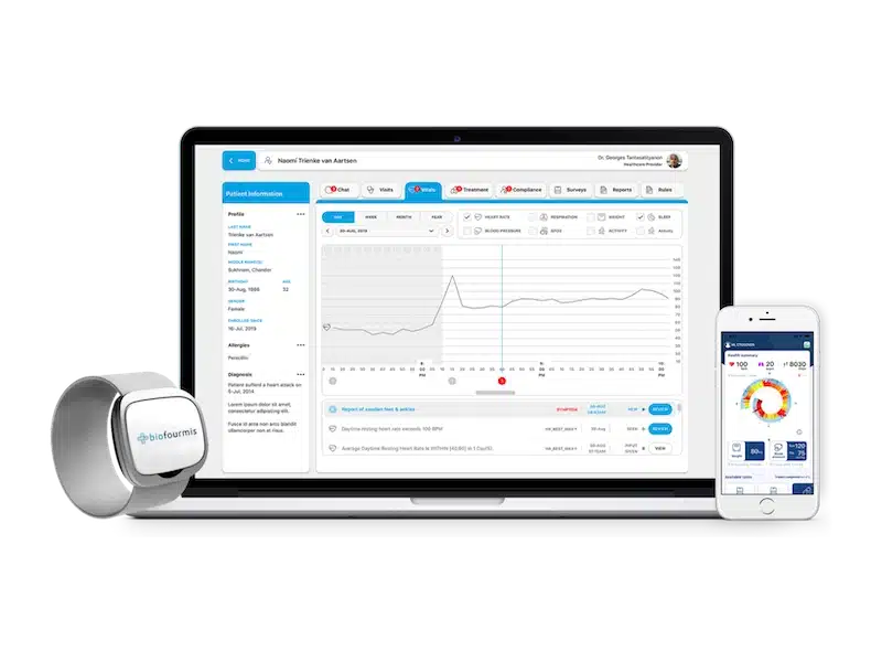 A Biofourmis é inovadora no setor de saúde com seu dispositivo biossensor vestível Everion™ que mede sinais vitais e biomarcadores. As capacidades integradas de IA e de aprendizagem automática conferem à solução um poder personalizado e preditivo: por exemplo, pode dizer a um indivíduo que a sua condição de saúde pode estar piorando e aconselhá-lo a procurar cuidados médicos.