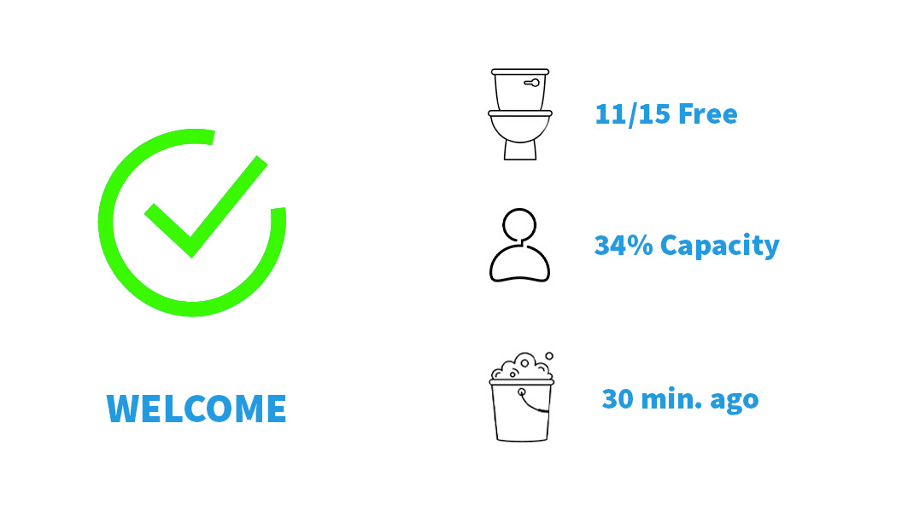 Haltian’s See Thingsee PRESENCE sensor device for visitor counting and occupancy monitoring. Smart Washrooms can have info screens that tell the user the capacity and cleaning information.