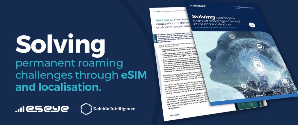 Kaleido Intelligence state in a new research report that ‘the combined hardware and software components in eSIM essentially provide a reprogrammable SIM card – devices can operate using local, rather than roaming data rates, but switching between operators means that the set of roaming partners accessible to the devices can be switched’.