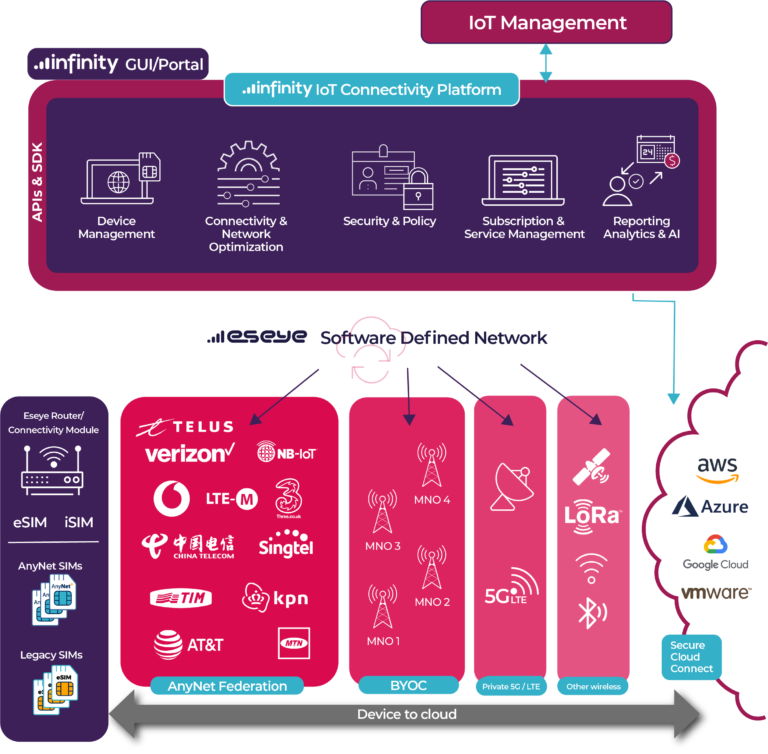 Infinity is Eseye’s award-winning IoT Platform™. In combination with our global connectivity capability, it solves the conundrum of how to manage thousands of IoT devices – without being overwhelmed by cost and complexity.