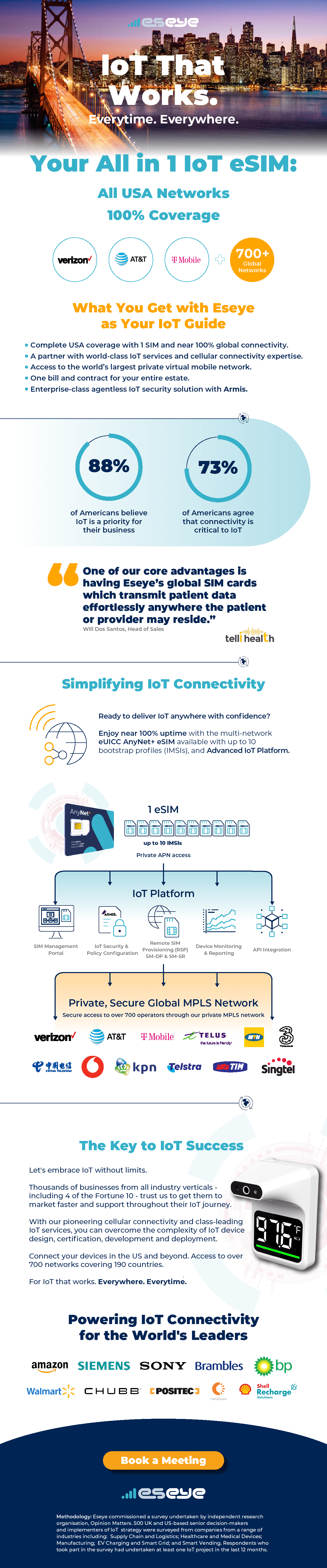 Kieran is passionate about IoT and has been working in the connectivity industry for over 21 years. As GM North America at Eseye, Kieran helps global customers unlock the power of IoT and achieve their business goals. Prior to joining Eseye Kieran Was Manager IoT Sales and Channel Development at TELUS in Canada.